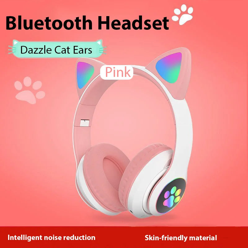 P47M Wireless Headphone Flash Light Cute Cat Bluetooth with Mic Control LED Stereo Music Helmet Phone Bluetooth Headset Gift
